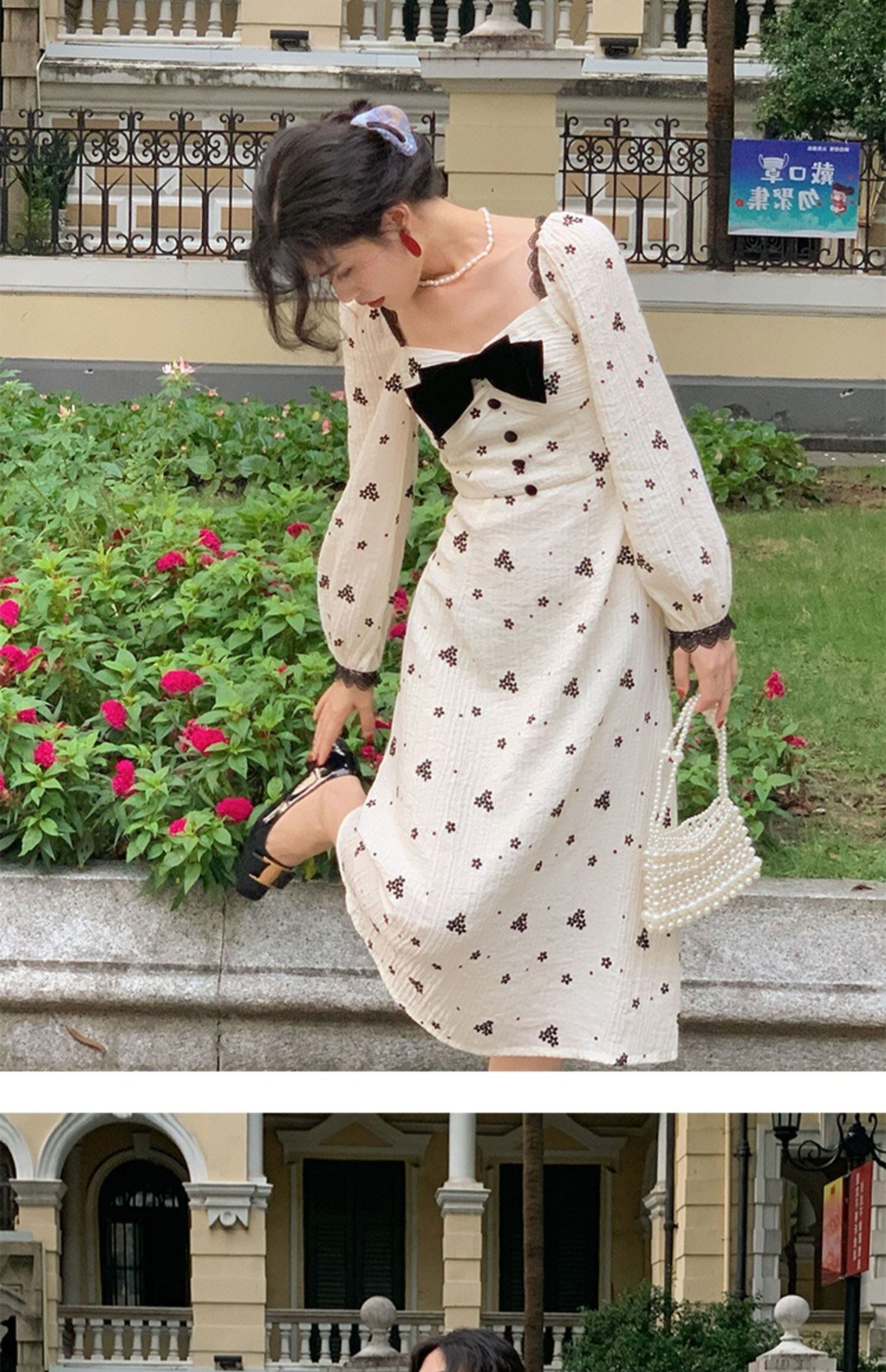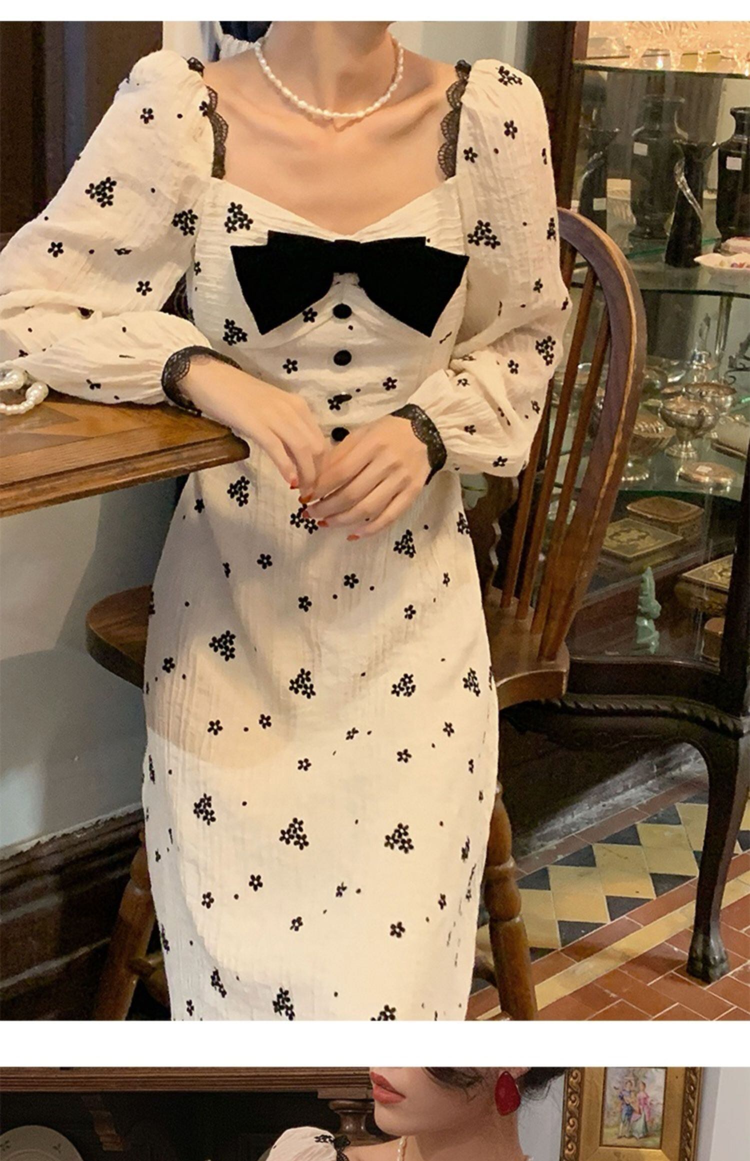 秋の婦人服2021年新作冷風ハイレベルな軽快感高級デザインリボン長袖スクエアネックワンピース ロング オータム 秋物 スクウェア yingd61224013873