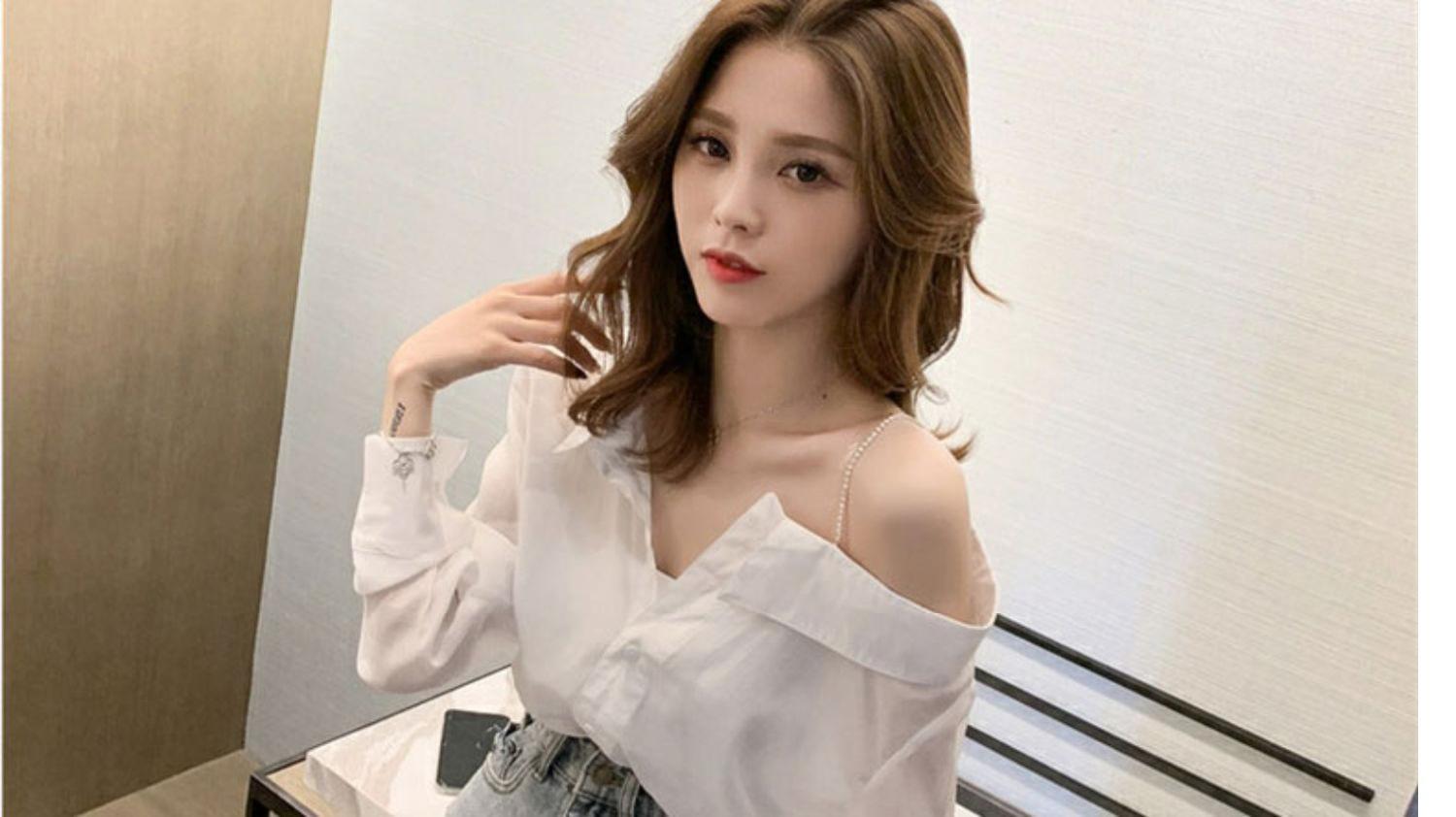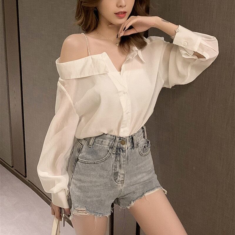 ワンショルダートップウィメンズ2020春新作スタイルエインスタイルストラップレスオフショルダーシャツウィメンズデザインセンスニッチホワイトシャツ スプリング 春物 yingd1112383830