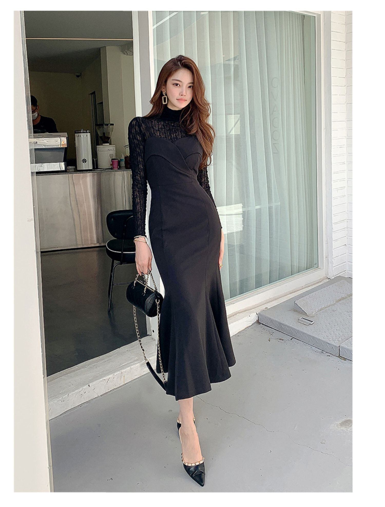 フレンチニッチティーブレイクフライドストリートデザインスカートライトマチュア気質レディーススリングドレス秋冬ツーピース オータム 秋物 ウィンター 冬物 yingd31267812200