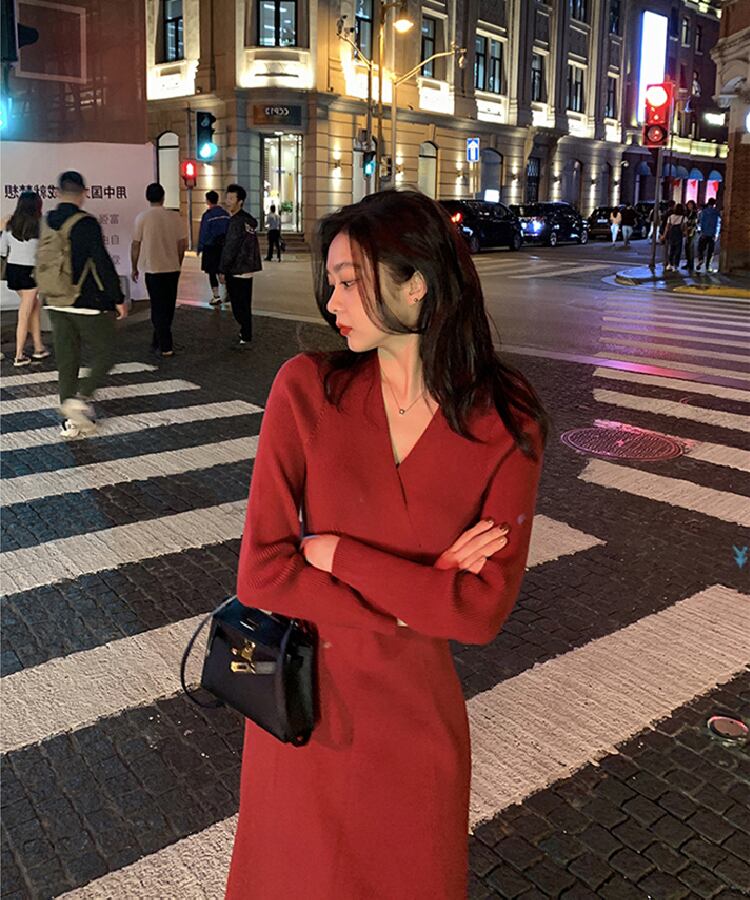 ニットスカート、スリムで薄い気質のコートを着て、女神ファンデザインセンスベースニットドレス女性秋冬 オータム 秋物 ウィンター 冬物 yingd94865059846