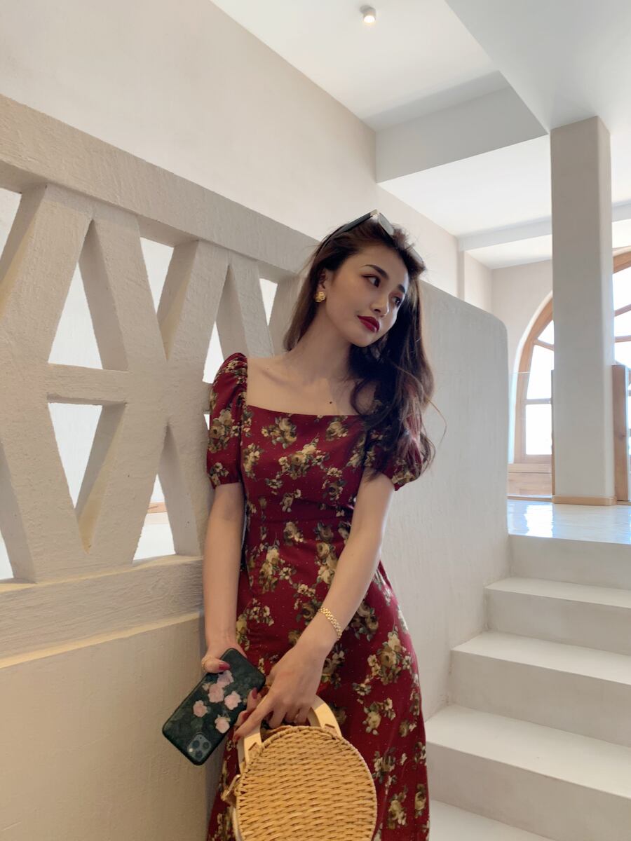 スカート女性2020年夏新しいフランスのレトロなニッチヘップバーンスタイル花柄スカート気質ウエスト痩身ドレス女性 サマー 夏物 yingd21150585351