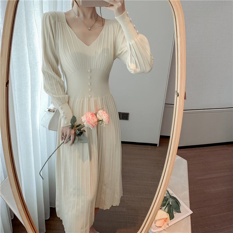 長い膝上セータースカート女性の秋と冬の気質軽い豪華な女性はスリムなニットドレスの女性の秋と冬を着用します ロング オータム 秋物 ウィンター 冬物 yingd55592458293