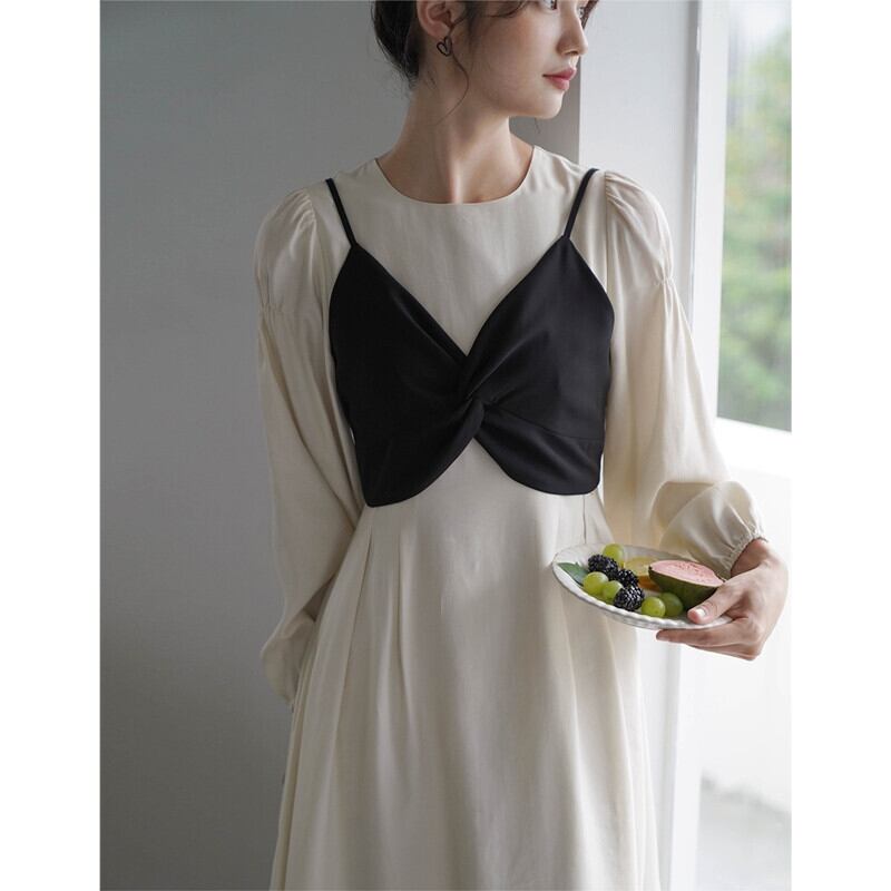 初秋のドレス2021新しいフランスの穏やかな風の気質の女神ファン高感覚のパフスリーブドレスツーピース オータム 秋物 yingd24657554794