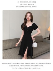 フランスのレトロシックなデザインのスカートレースエッジスリムスリミングセクシーなスプリットパフスリーブドレス女性の夏 サマー 夏物 yingd35107202866