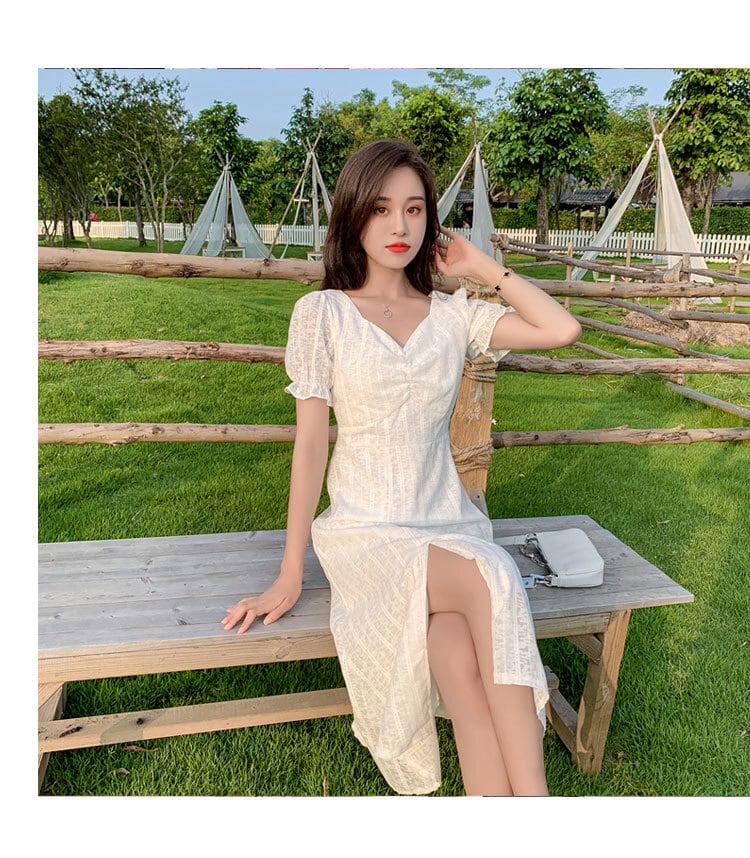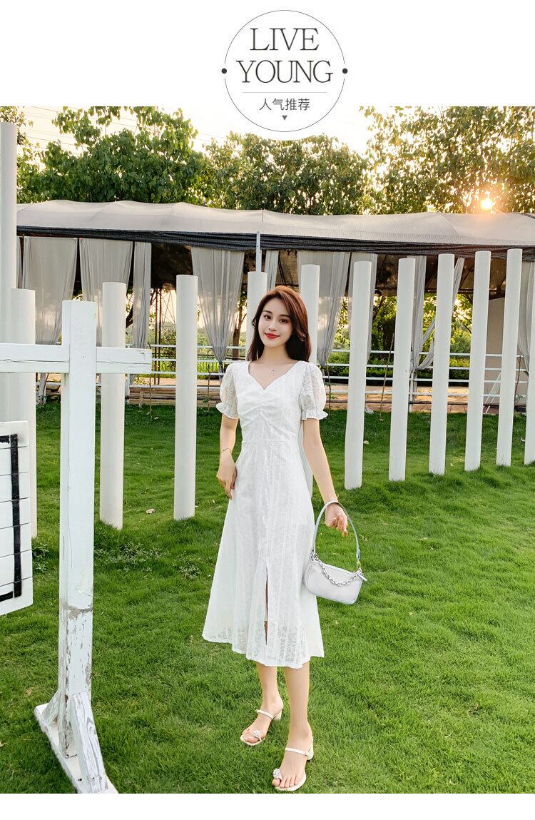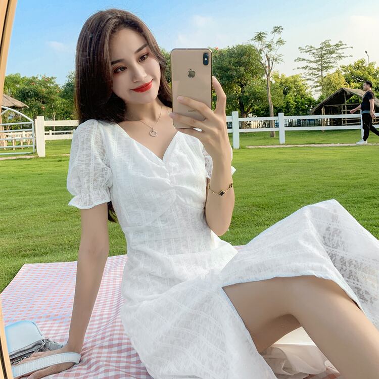 フランスのレトロな初恋の妖精のドレススーパー妖精のエスト気質の女神ファンパフスリーブ白いドレス女性は注意してください ホワイト yingd87378370715