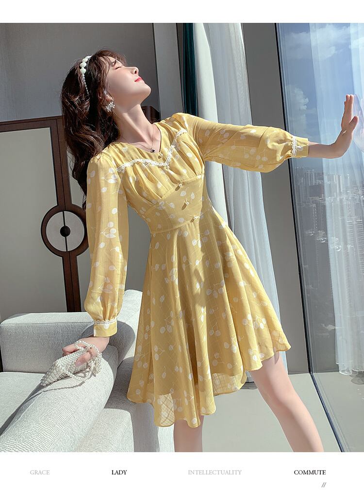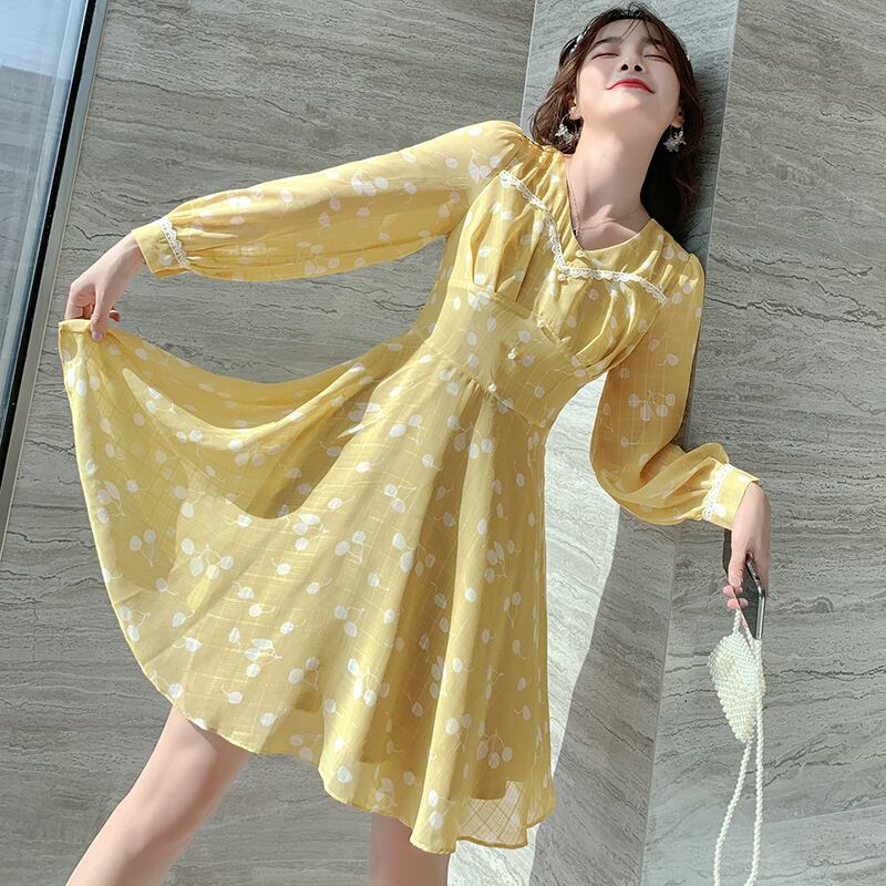 フランスのニッチな甘い妖精のスカートシックな優しいウエストは薄い気質でした小さな新鮮なドレス小さな秋の服 大人ガーリー スウィート キュート カジュアル オータム 秋物 yingd86040484945