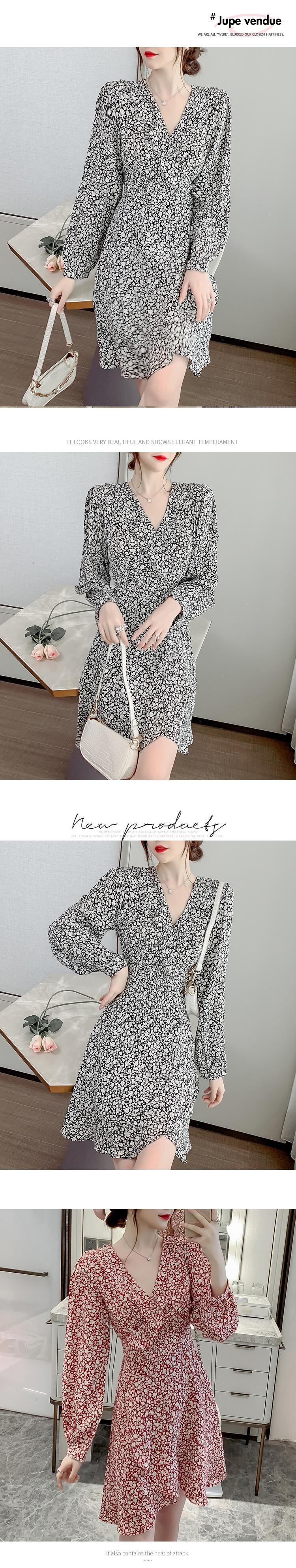 2021年秋新しい女性のフランスのレトロな穏やかな風は塩になることができます甘い長袖Vネックシフォン花柄のドレスにすることができます ロング 大人ガーリー スウィート キュート カジュアル オータム 秋物 yingd39280114019