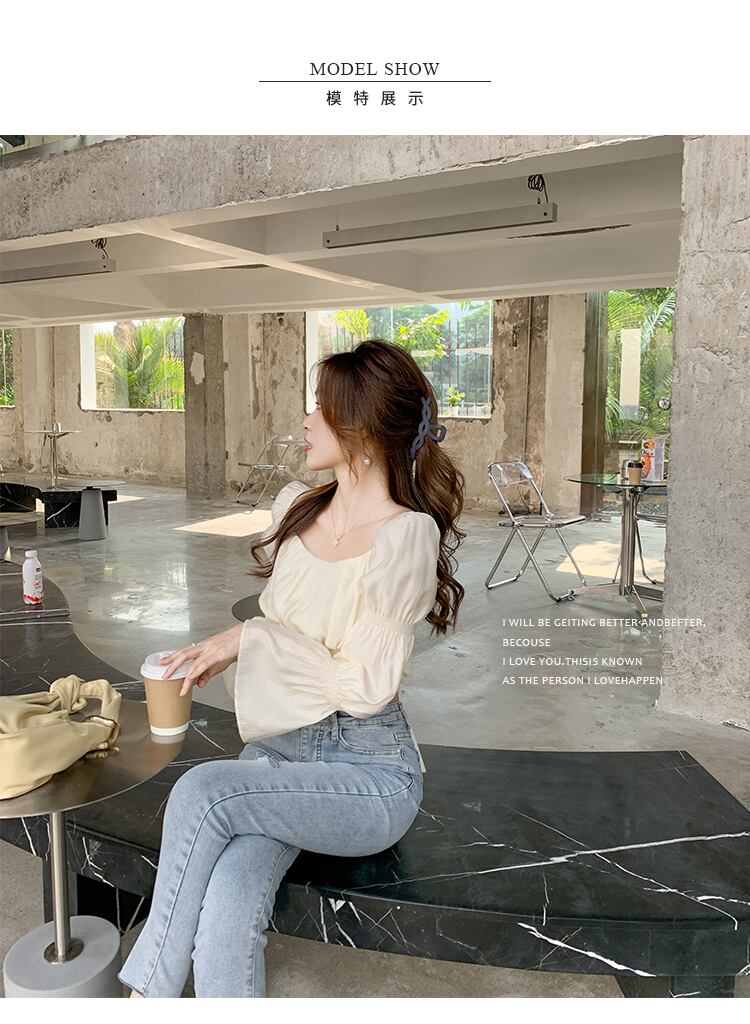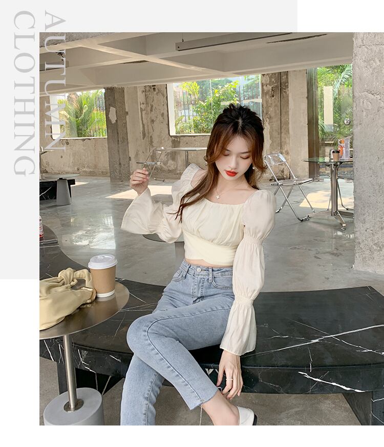 2021年秋新しいスタイルの女性フレンチレトロスクエアカラーショートシャツブラウス薄片フェアリー長袖シャツトレンド ロング オータム 秋物 スクウェア yingd79469184660