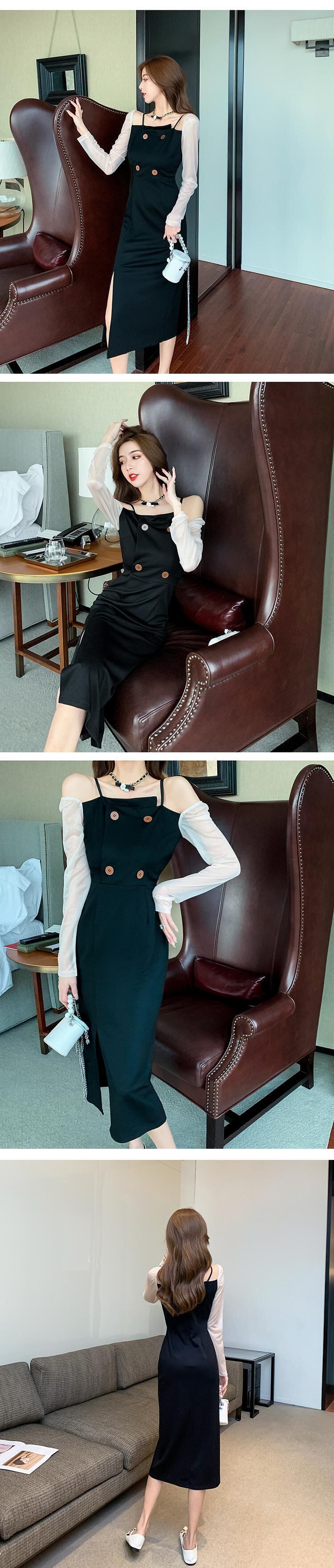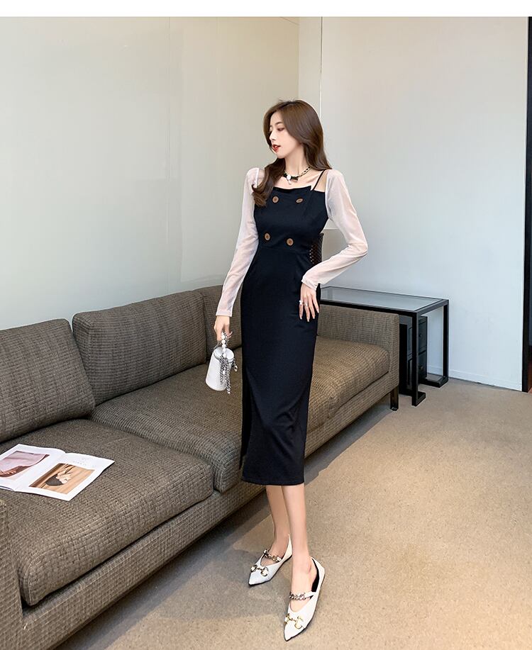 2021年秋新しいコールドスタイルの婦人服ハイエンドライトラグジュアリーレディースデザインセンスボタンスリムドレスレディース オータム 秋物 yingd96816397070