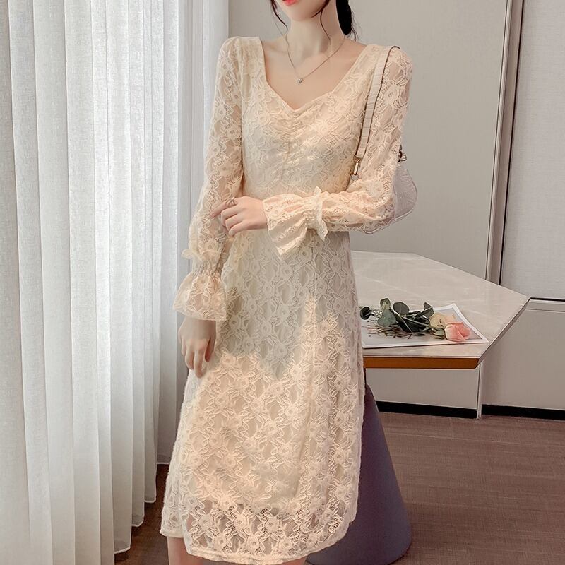 2021年春の新しい女性のフレンチスタイルのニッチな穏やかな風の気質の女性のレトロなスクエアカラーのレースの妖精のドレス スプリング 春物 スクウェア yingd50900665630