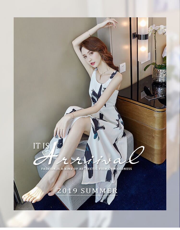 ウエストと細い気質のフランスのレトロなスリングロングドレス、軽い成熟したスタイル、セクシーな背中の開いたプリントスリングドレス、女性の夏 サマー 夏物 yingd4166733096