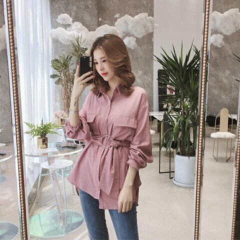 女性の長袖シャツ2019年春の新バージョンのウエストスリミングトレンディな服の陰謀デザインニッチシャツ ロング スプリング 春物 yingd39177458987