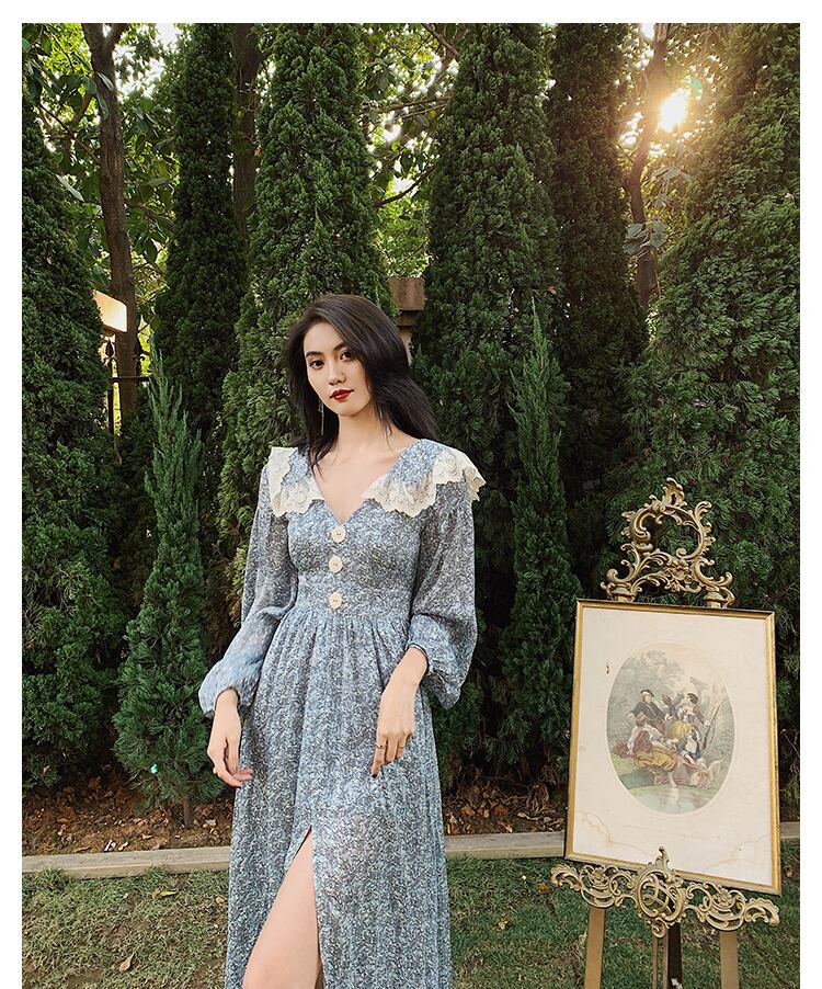 2021年春の新しいフランスのレトロなコールドスタイルの女性のハイエンドのセクシーなオープンバックフローラルドレス スプリング 春物 花柄 yingd44663221076