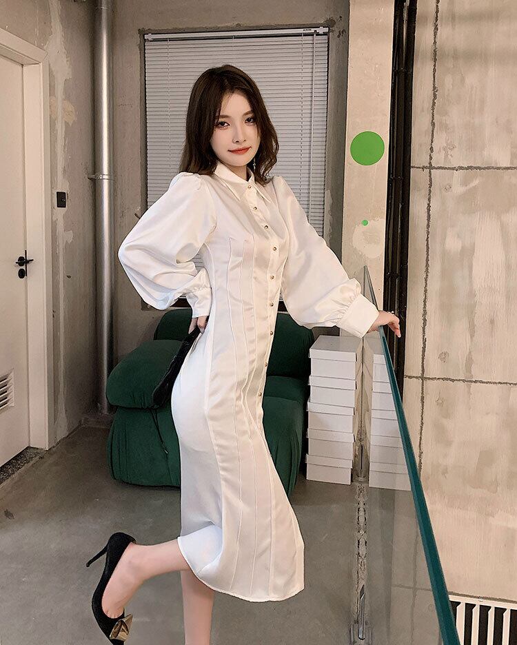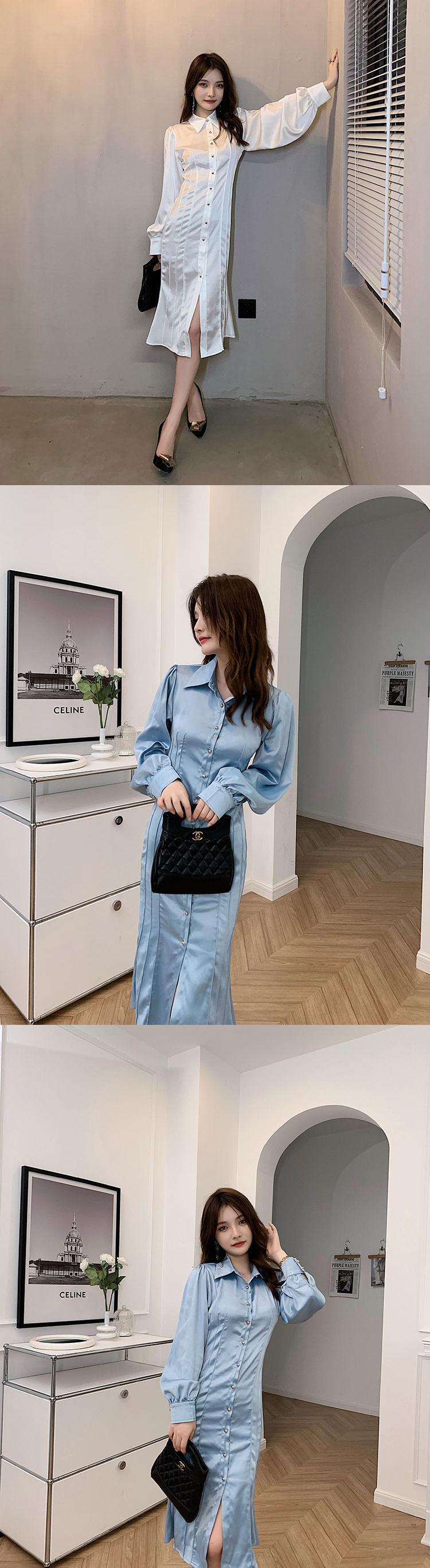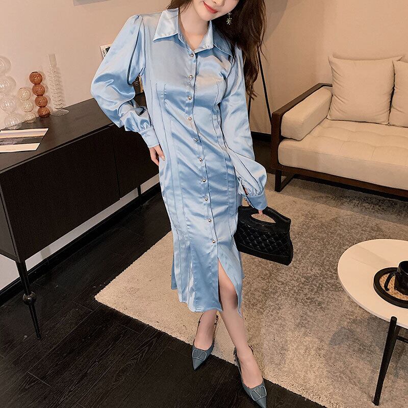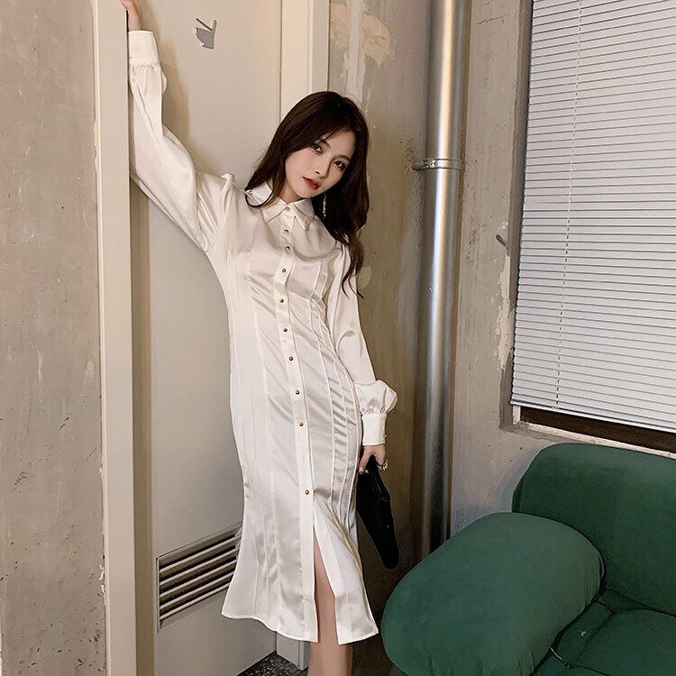 2021年秋新作レディース冷風レディースハイレベルなアセテートウエストフィッシュテールシャツドレスレディースロングスカート オータム 秋物 yingd8643853521