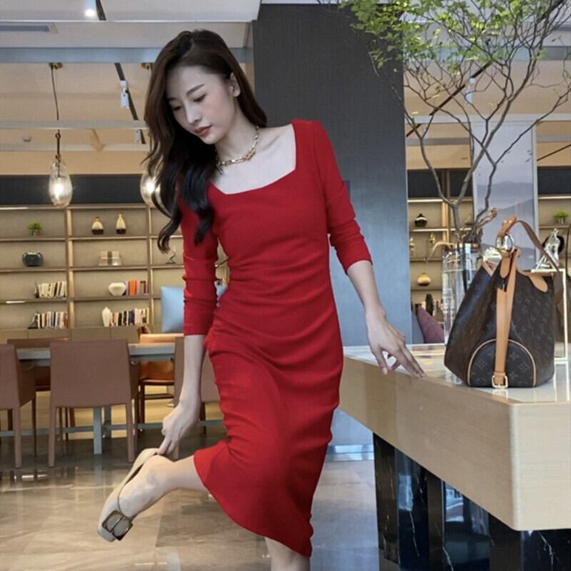 2021年秋新しい軽い贅沢な女性の高品質のスリムで薄い気質のセクシーなスプリットヒップドレスの女性 オータム 秋物 yingd24652714930