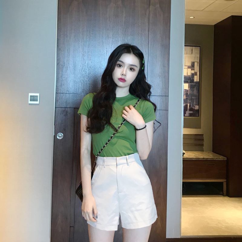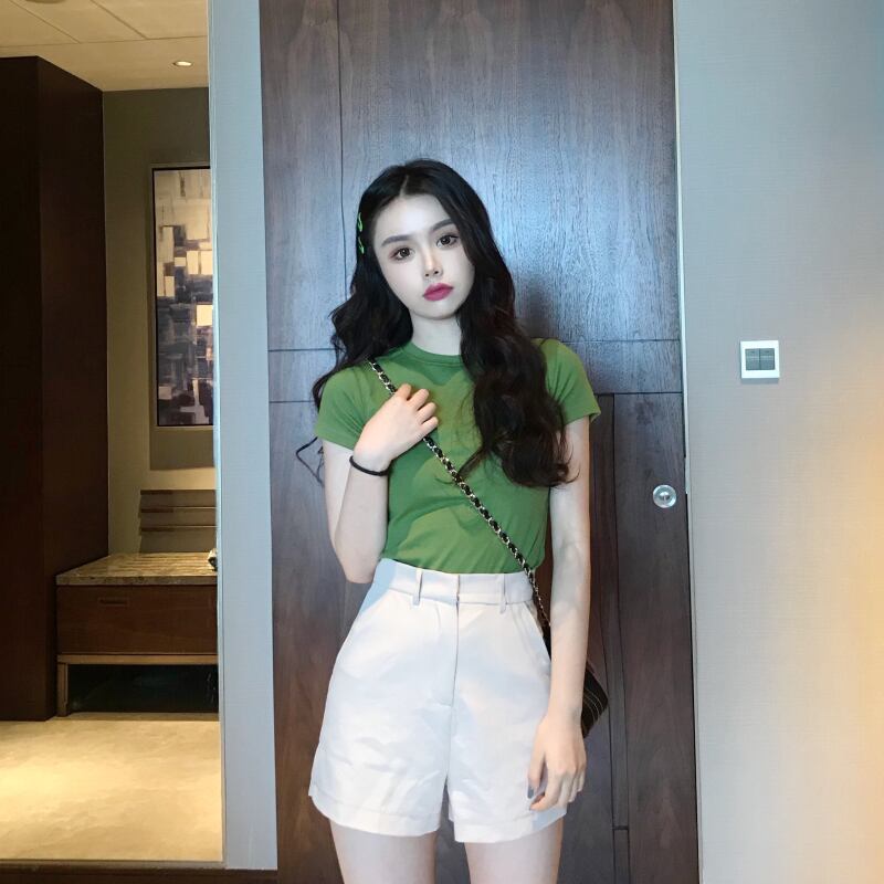 アボカドグリーンスーツ女性2019年新夏はとても妖精フランスニッチウエスタンスタイル遊び心のある年齢削減ショーツツーピーススーツ サマー 夏物 ブルマー yingd78915218679