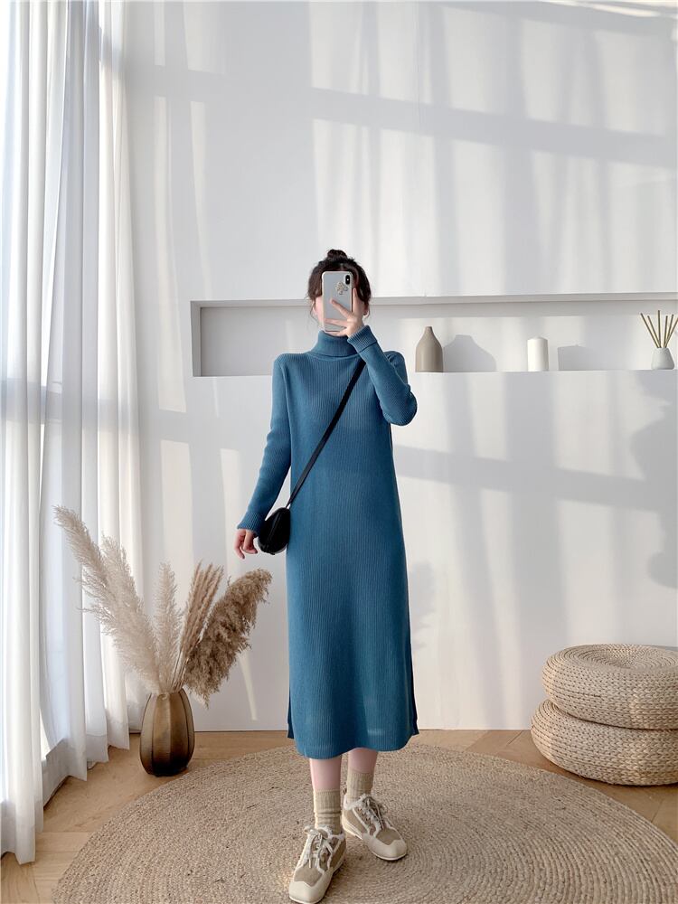 膝上にコートを厚くしたロングセータースカートとベースのハイネックニットドレスの女性の秋と冬のスカートの冬 オータム 秋物 ウィンター 冬物 yingd31834028307