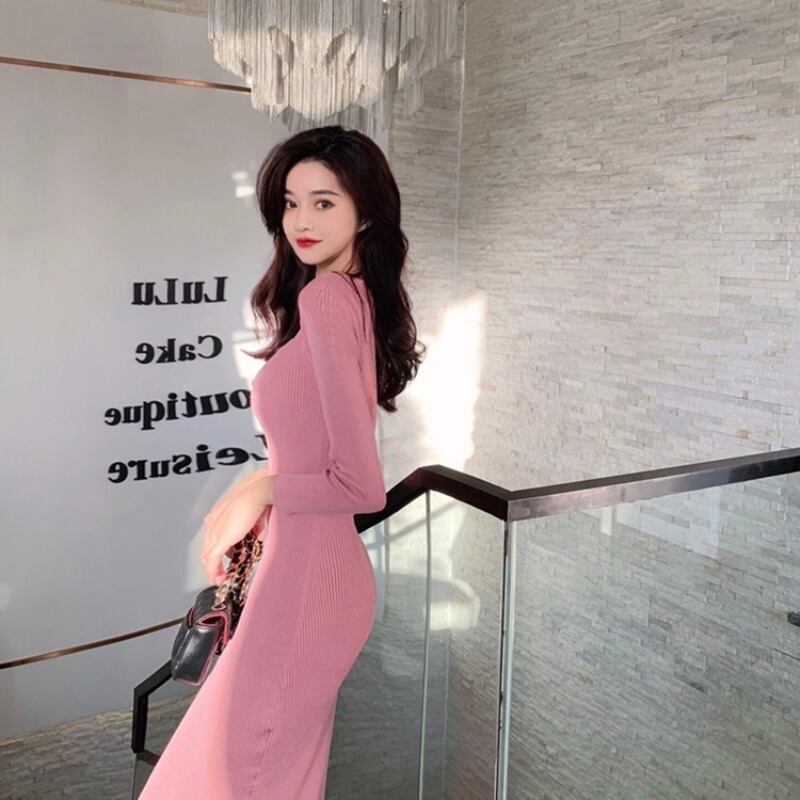 フランスのニッチな膝上セータースカートのウエストは薄くてセクシーです、お尻のボトミングニットドレスの女性の秋と冬 オータム 秋物 ウィンター 冬物 yingd97723699843