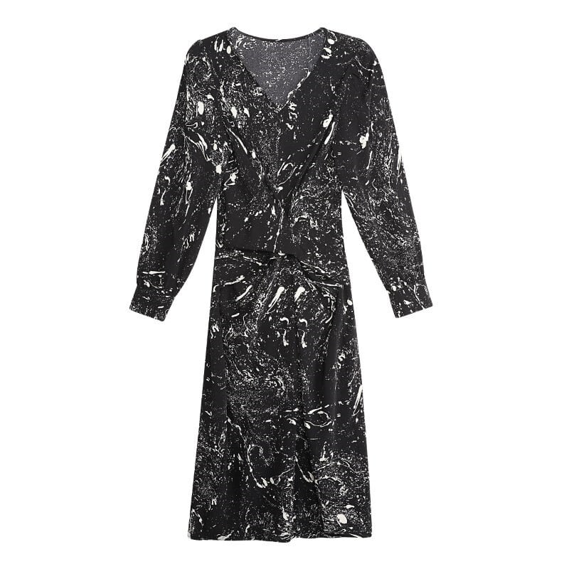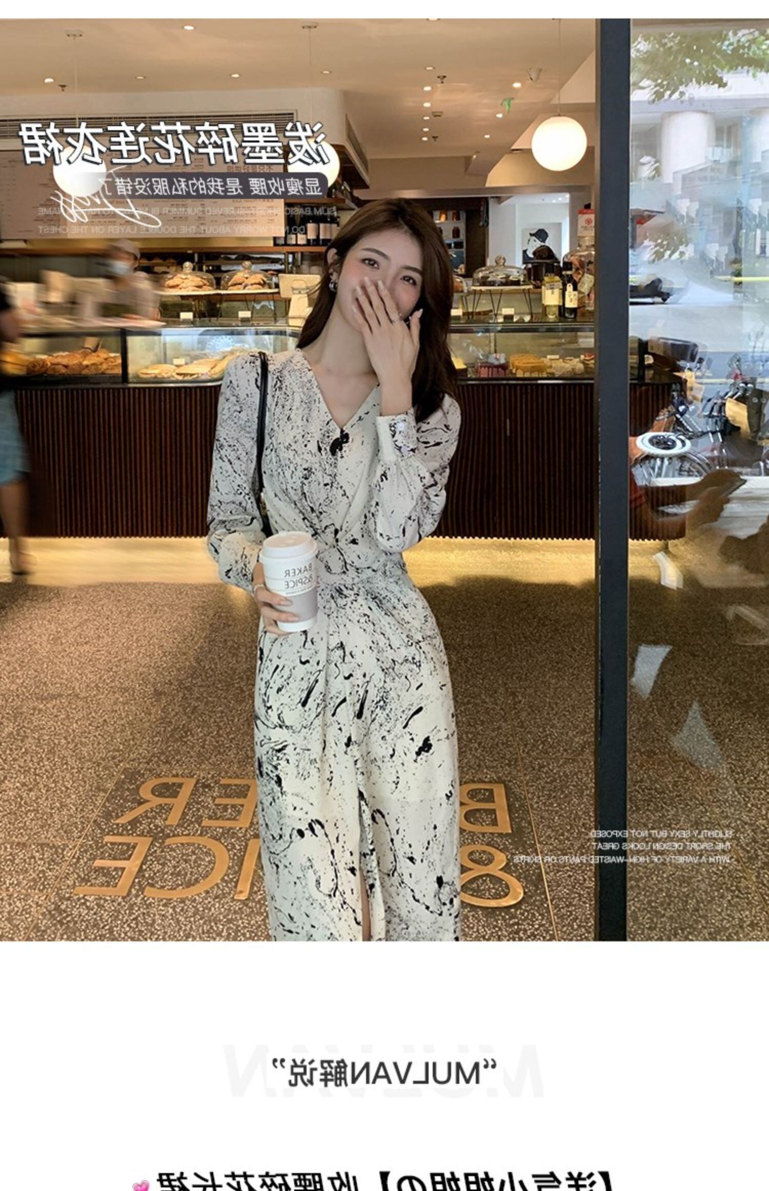 初秋の服2021新しいコールドスタイルの女性のハイレベルなウエスト感セクシーなVネックスプリット長袖ドレス女性 ロング オータム 秋物 yingd21283440138