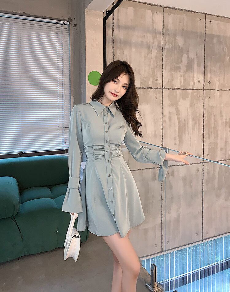 2021年秋新作フレンチシックデザインシャツスカートゆうじえライトマチュアウィンドウエストシャツドレスレディース オータム 秋物 yingd76974514708