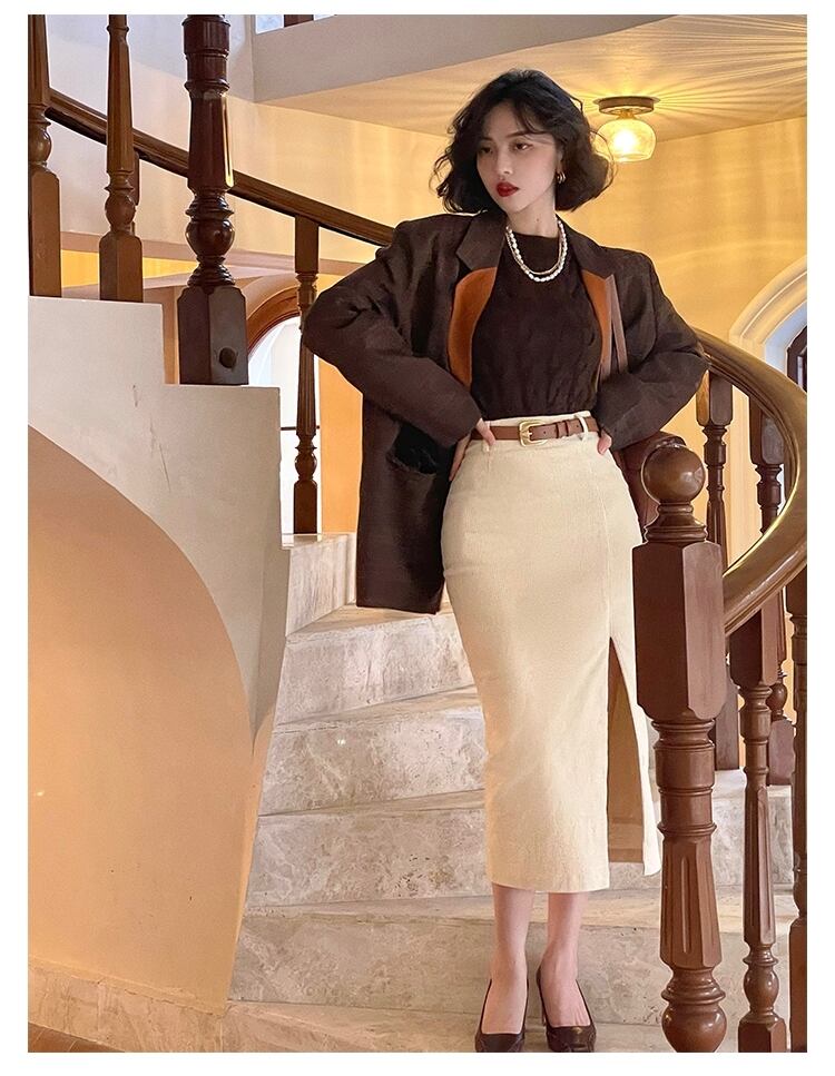 2021年秋新しいフレンチレトロ香港スタイルミドルレングスハイウエスト細いラインパッケージヒップスプリットスカート女性 ハイウェスト オータム 秋物 Aライン yingd48016176592