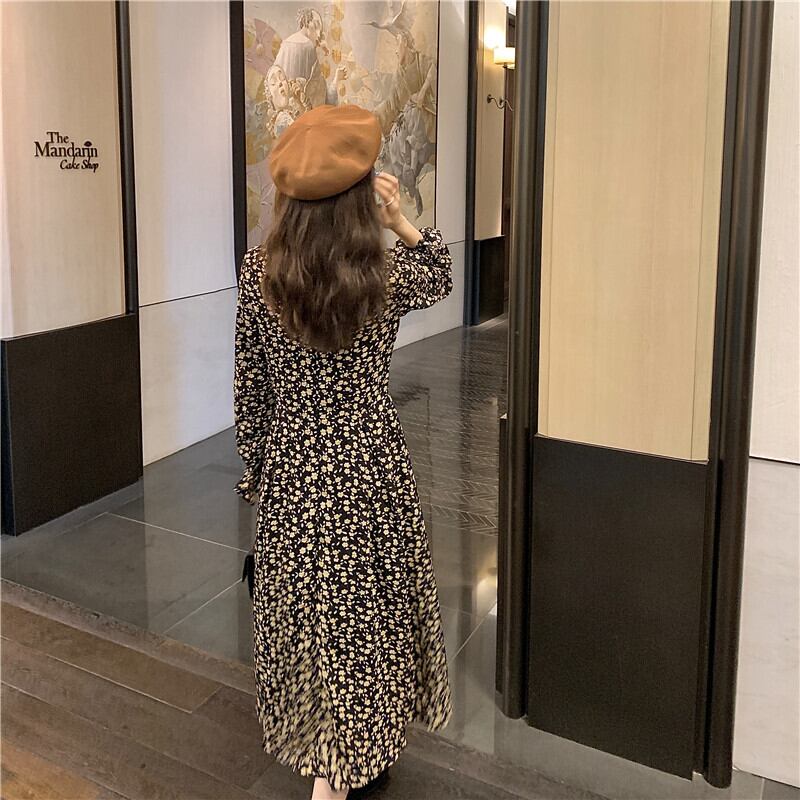 2021年春新作フレンチレトロ優しい風ウエストスリミング気質女神ファン長袖フローラルドレス ロング スプリング 春物 花柄 yingd8169073464
