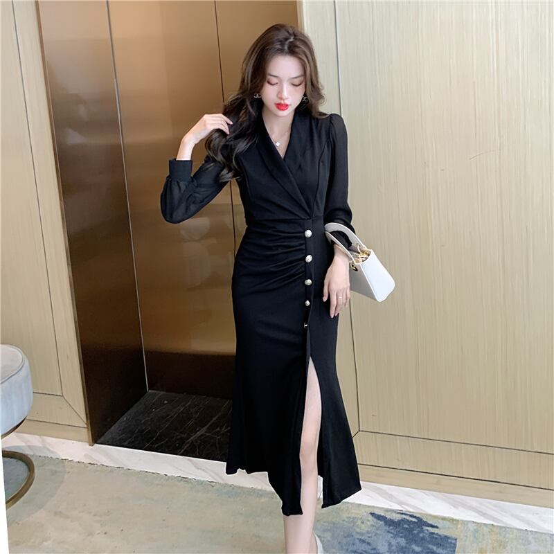 2021年秋新作スタイルの冷風、ハイレベルなセンス、軽やかな高級感のあるデザインセンス、スリムな折り目セクシーなスプリットドレスの女性 オータム 秋物 yingd14618611895