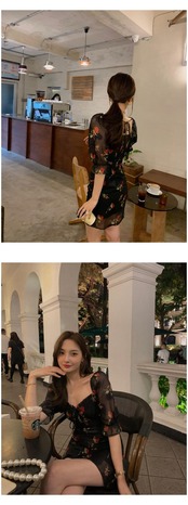 フランスのレトロなヘップバーンスタイルの花柄のショートスカートのウエストは細く、気質の小さなスカートのセクシーなシフォン花柄のドレスの女性でした yingd80634628631