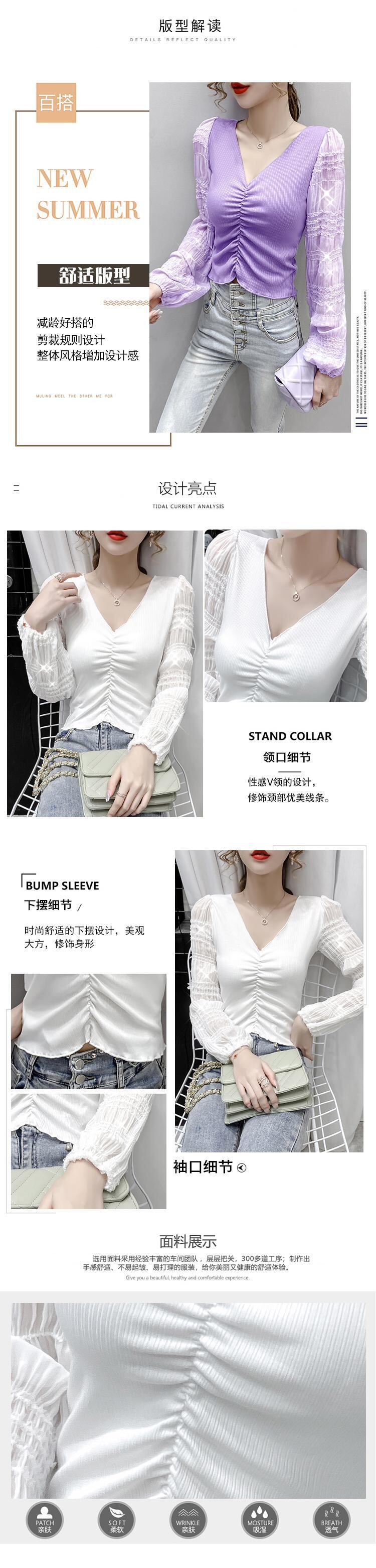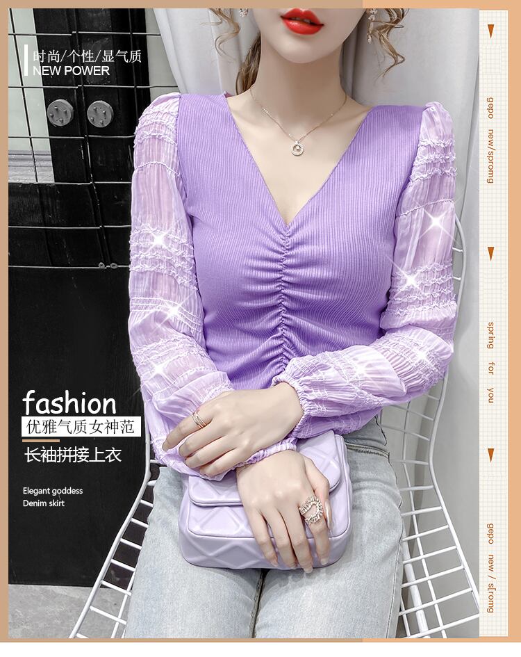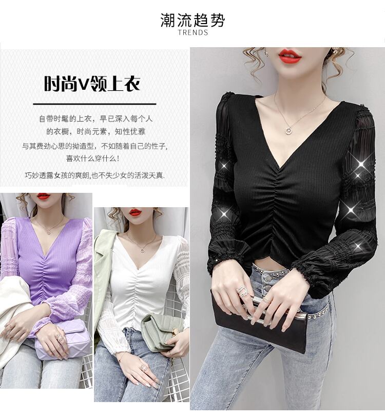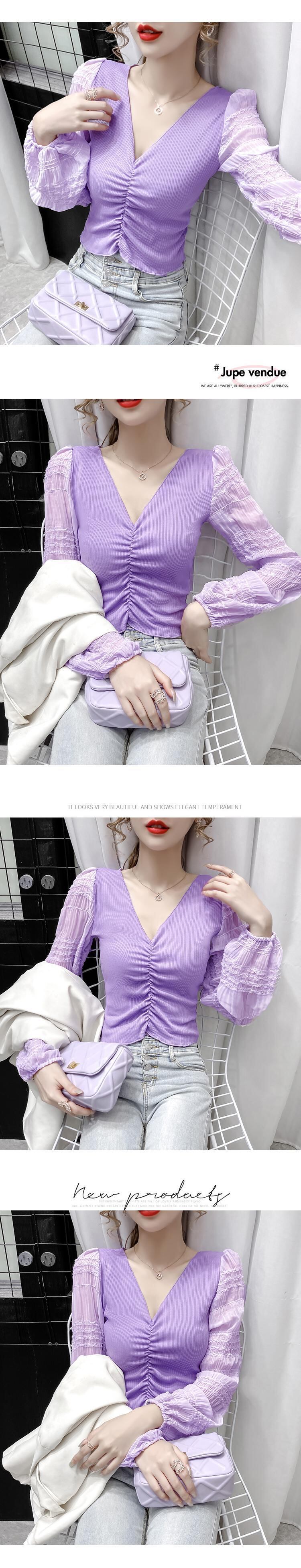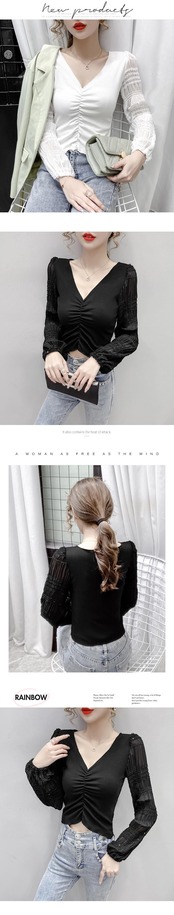 2020年秋新作スーパーフェアリーレースシフォン長袖ステッチニットセータートップスレディースウエストウエストスモールシャツ ロング オータム 秋物 yingd51578292435