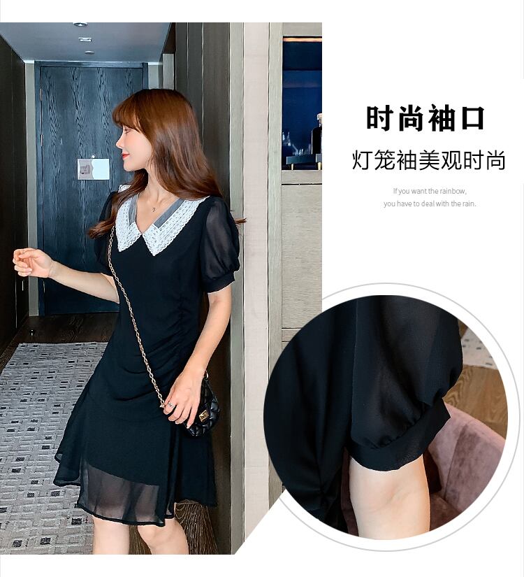 フランスのレトロなヘップバーンスタイルのリトルブラックドレス気質の女神ファンウエストは細い人形の襟黒のドレス女性の夏でした サマー 夏物 yingd32357435445