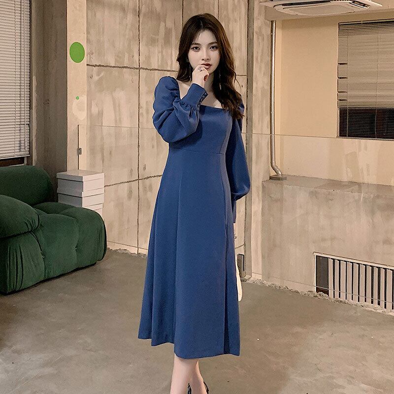 2021年秋新しいフレンチスタイルのスクエアネックパフスリーブスプリットロングスカートウエストハイレベルなセンスの純粋な欲望ドレス女性 オータム 秋物 ピュア スクウェア yingd13435430461