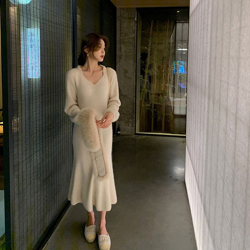コート付き、膝上丈のセータースカート、ウエストが細く、気質の高さ、ニットワンピース、秋冬女性 ロング オータム 秋物 ウィンター 冬物 yingd34383397569