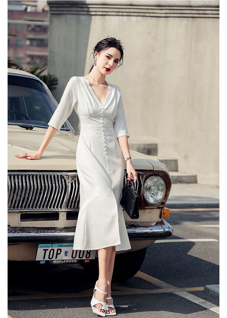 2021年秋新しい女性のハイエンドライトラグジュアリーレディーススリムスリムセクシーなVネックフィッシュテールスプリットドレス オータム 秋物 yingd16666730612