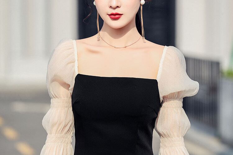 2021年秋ニュースタイルフレンチレトロヘップバーンスタイルリトルブラックドレスハイセンスで軽やかなレディーストランペットスリーブドレス オータム 秋物 yingd59618524293