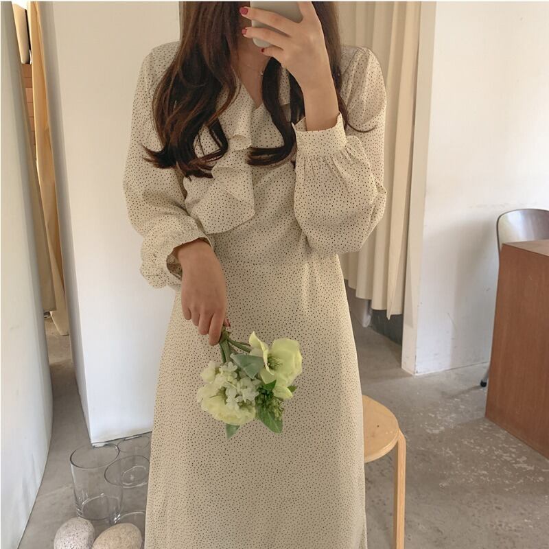 フランスのニッチキキョウロングスカート足首妖精チーセンシステムウエストウエストは薄い気質シフォンフローラル長袖ドレス女性でした 花柄 yingd61141440017