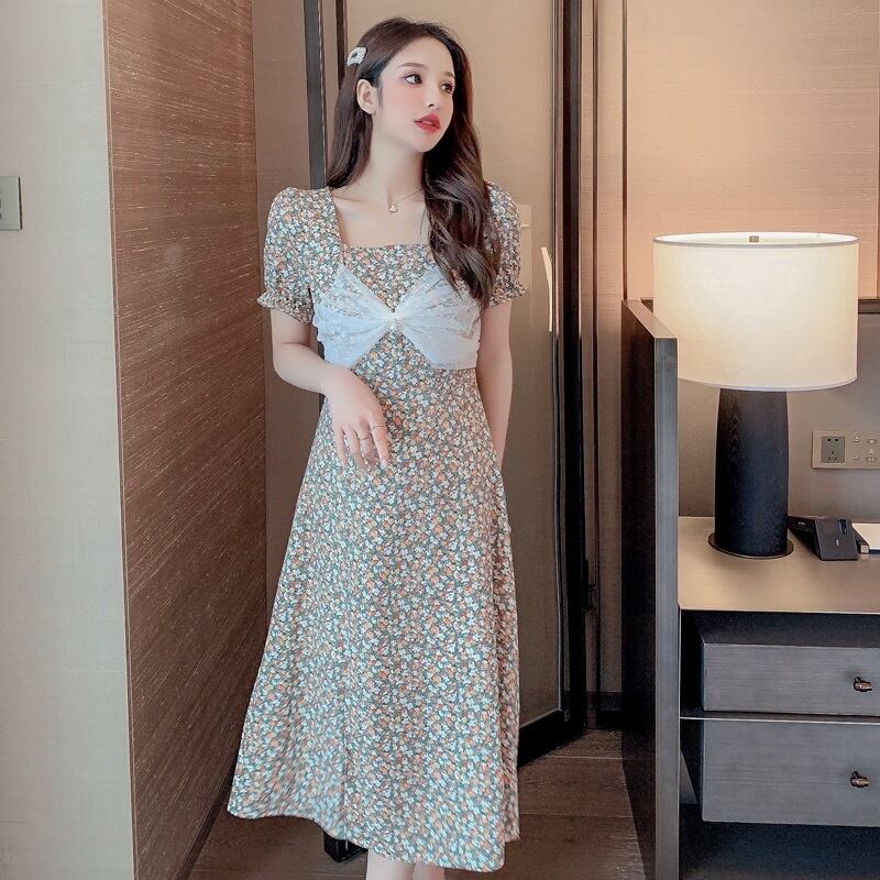 フランスのレトロなティーブレイクドレス女性の夏のドレス2021新しいスタイルの軽い豪華な女性のハイセンスフローラルドレスの女性 サマー 夏物 花柄 yingd51913035939