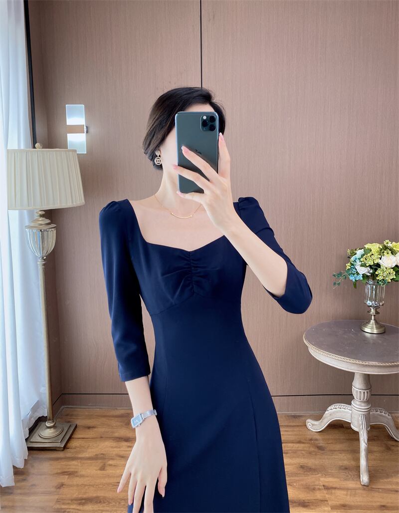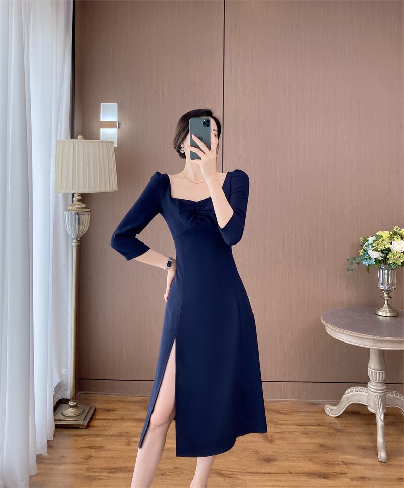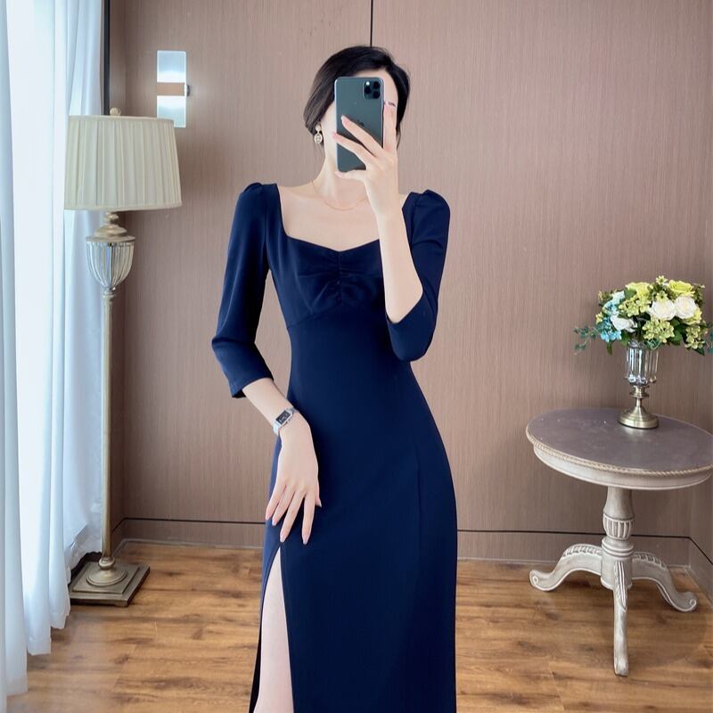 2021年初秋新婦気質女神ファンハイレベルな軽快感ラグジュアリーレディースセクシースプリットスクエアネックドレスレディース オータム 秋物 スクウェア yingd16700555721