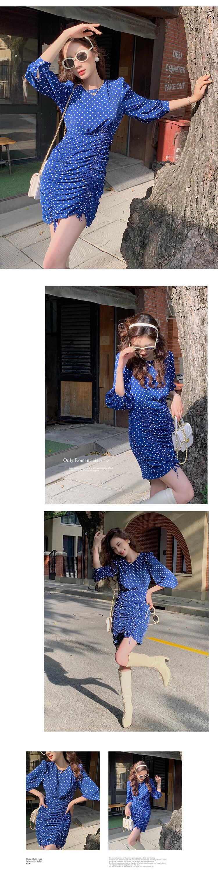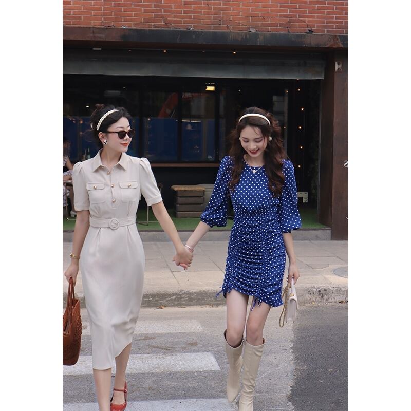 2021年初秋新作レディースフレンチレトロシックデザインニッチタイトフィットヒップ長袖水玉ドレス ロング オータム 秋物 yingd65428367482