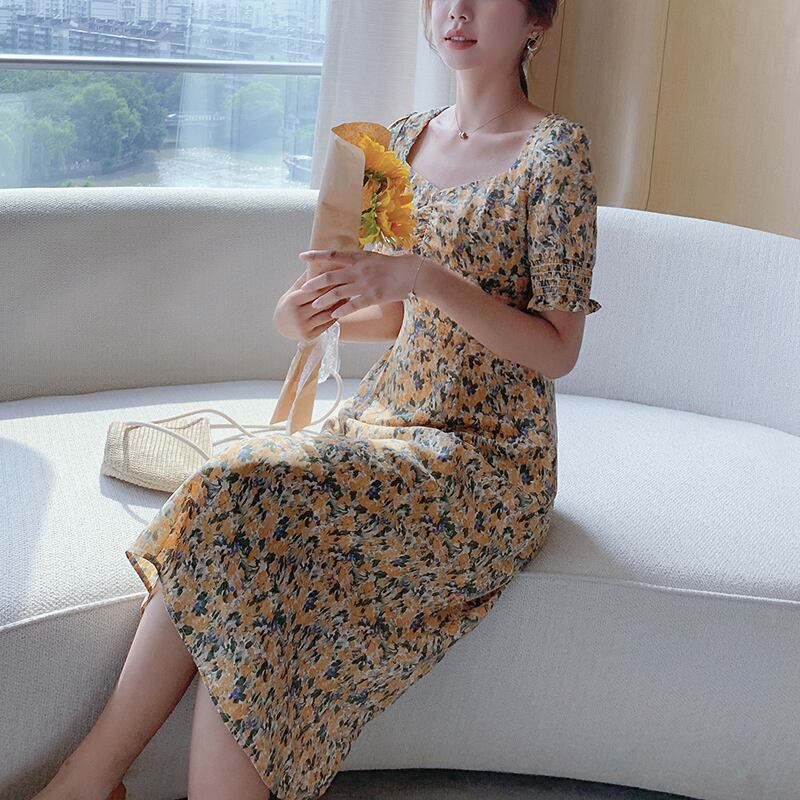 フランスのレトロなニッチベルフラワースカート気質の女神ファンケティアンは穏やかな風の花のシフォンドレス女性の夏を塩漬けにすることができます サマー 夏物 花柄 フラワーデザイン yingd89155762378