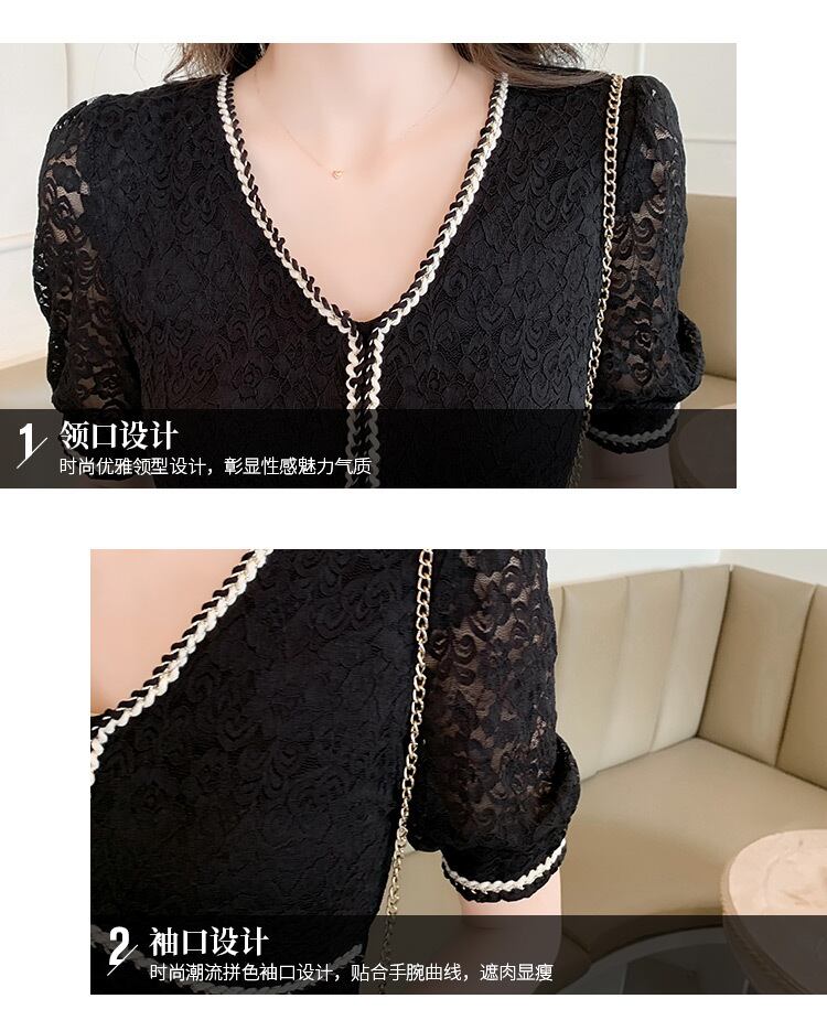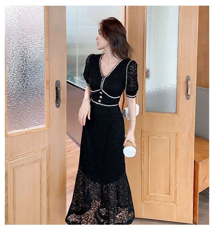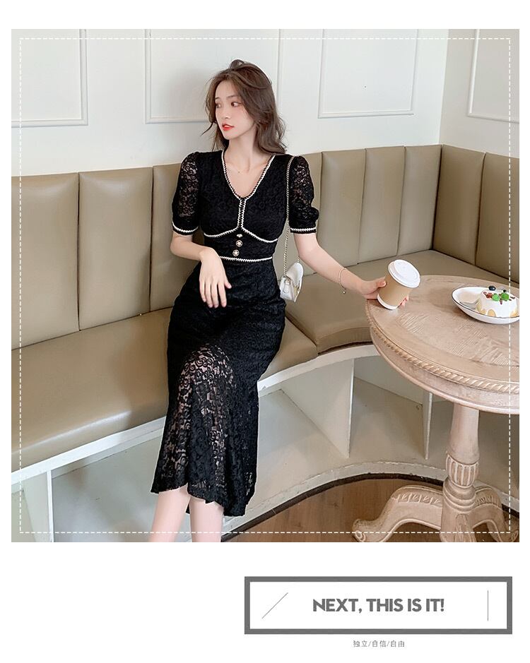 フレンチレトロヘップバーンスタイルリトルブラックドレス気質ロイヤルシスターライト成熟したスタイルセクシーなウエスト中空レースドレス女性の夏 サマー 夏物 yingd27912264715