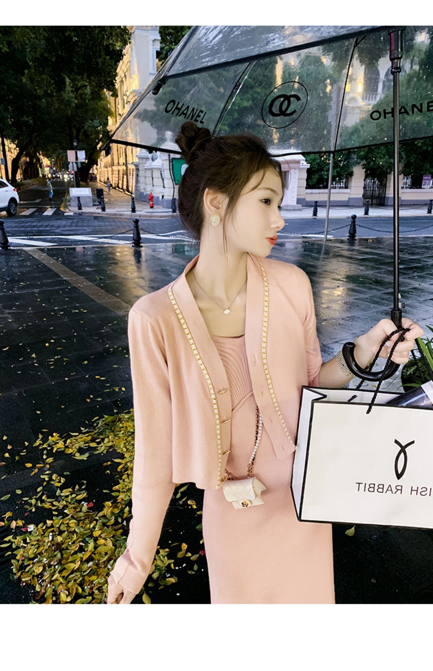 2021年秋新作女性優しい風ニットカーディガン気質スーツ妖精ドレスツーピーススーツ薄片 オータム 秋物 yingd45712738881