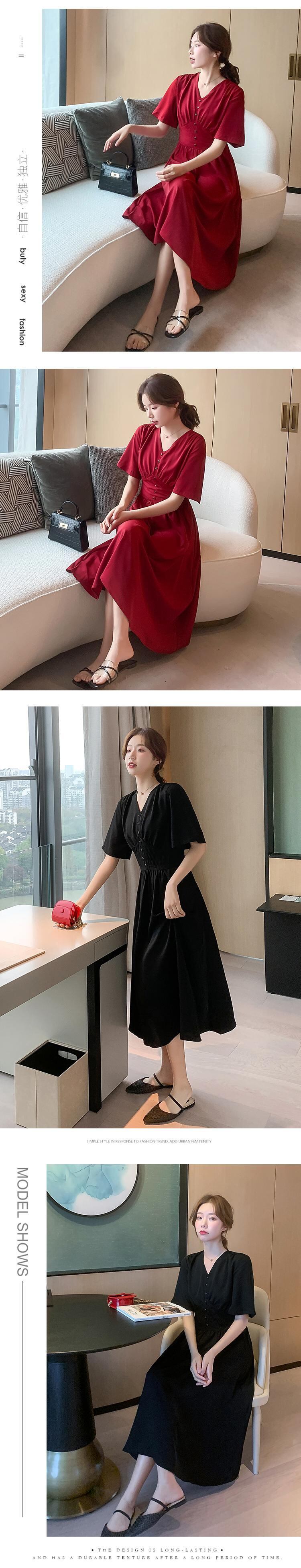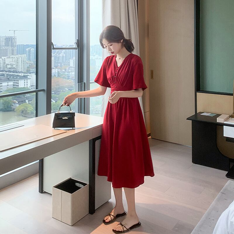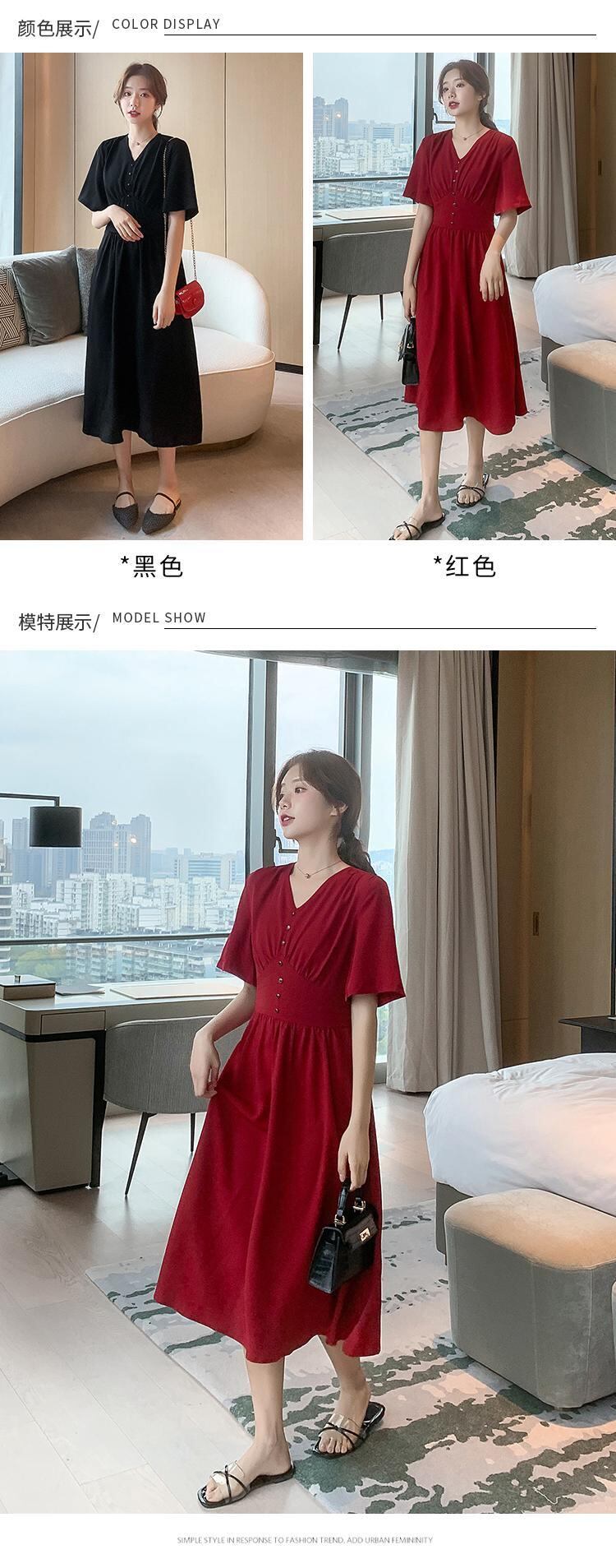 2020年新作フレンチレトロ気質Vネックシフォンドレス女性夏ウエストスリミング人気スーパーフェアリーロングスカート女性 サマー 夏物 yingd60331240132