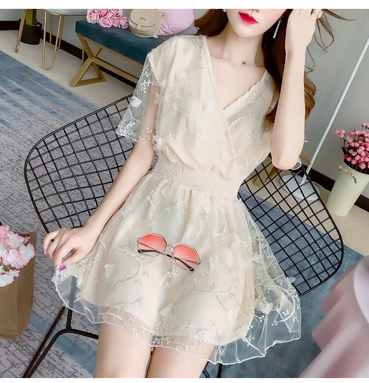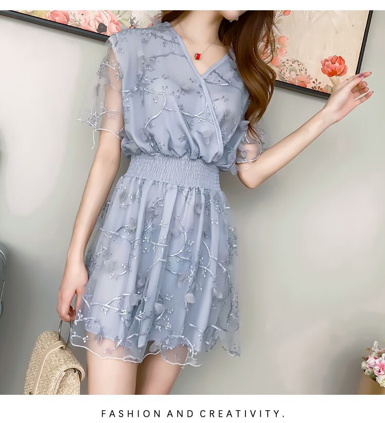 2020年夏の新作スカートフェアリースーパーフェアリーエストメッシュガーゼウエストスリミングシフォンドレス女性夏 サマー 夏物 yingd44120042000