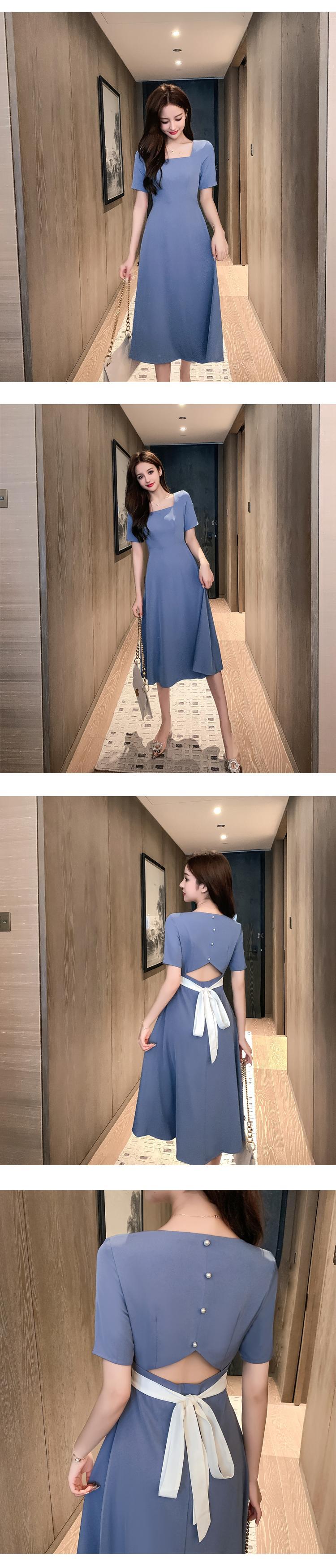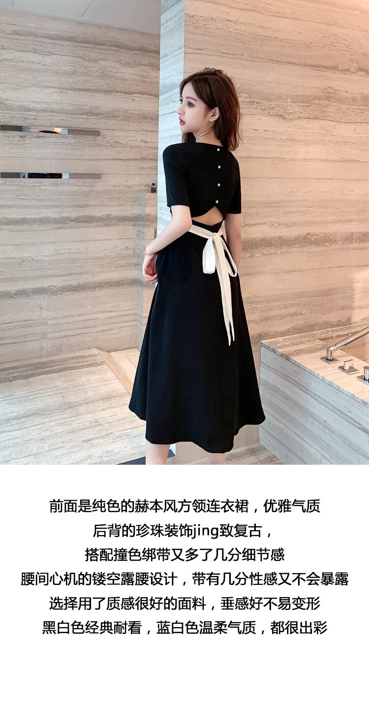 2020年夏の新しいフランスのレトロな人気のヘップバーンスタイルのリトルブラックドレスは慎重にオープンウエストのスクエアカラーのドレスの女性を機械加工します サマー 夏物 スクウェア yingd97761991494