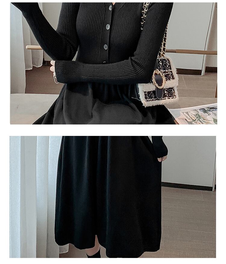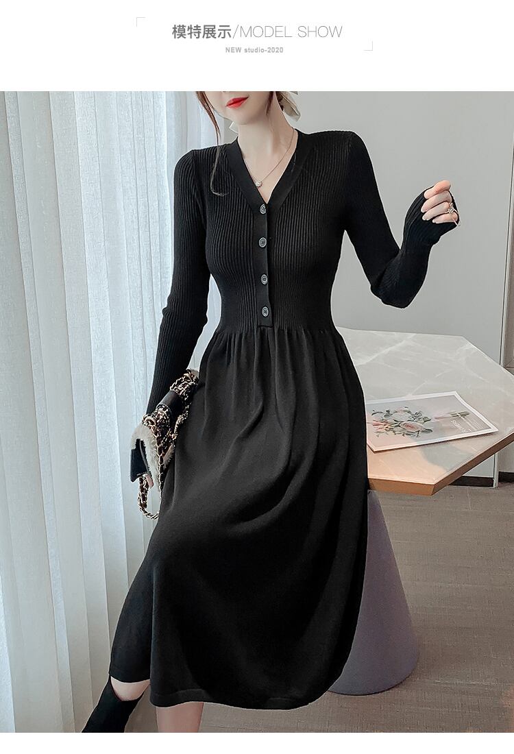 フランスのレトロなヘップバーンスタイルのリトルブラックドレスのウエストは細く、気質の女神ファンベースのニットドレスの女性の秋と冬 オータム 秋物 ウィンター 冬物 yingd38754246848