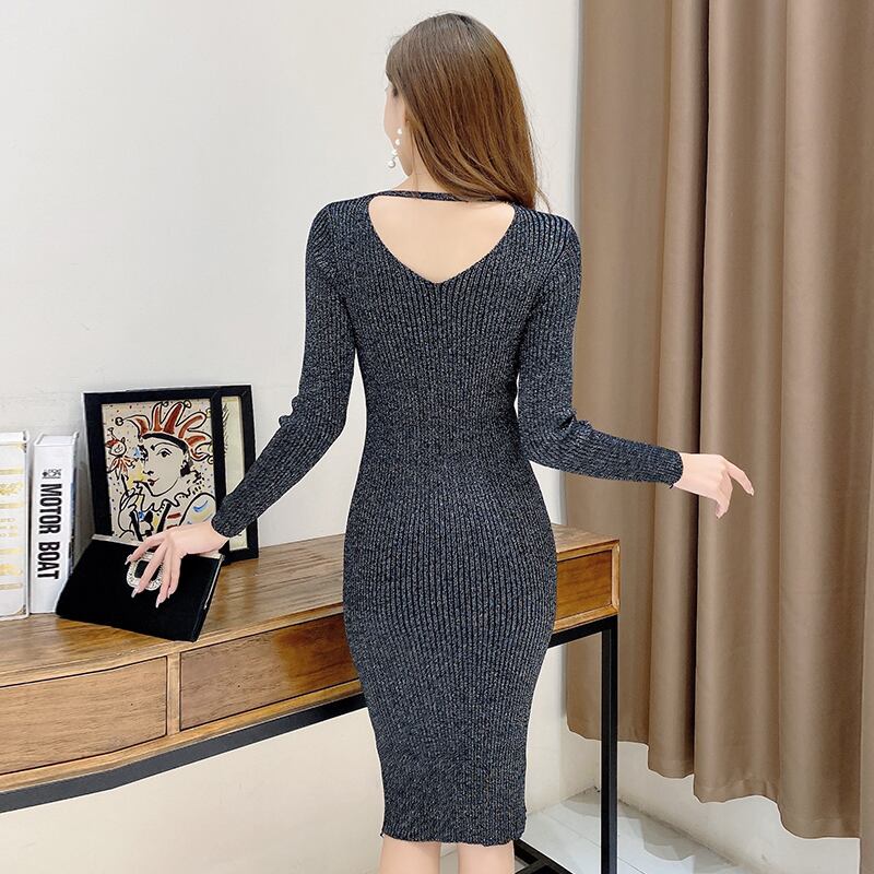 フランスのレトロなセクシーなバッグヒップセータースカート軽い成熟した風のウエストは薄い気質でしたVネックニットドレス女性の秋と冬 オータム 秋物 ウィンター 冬物 yingd39386652420