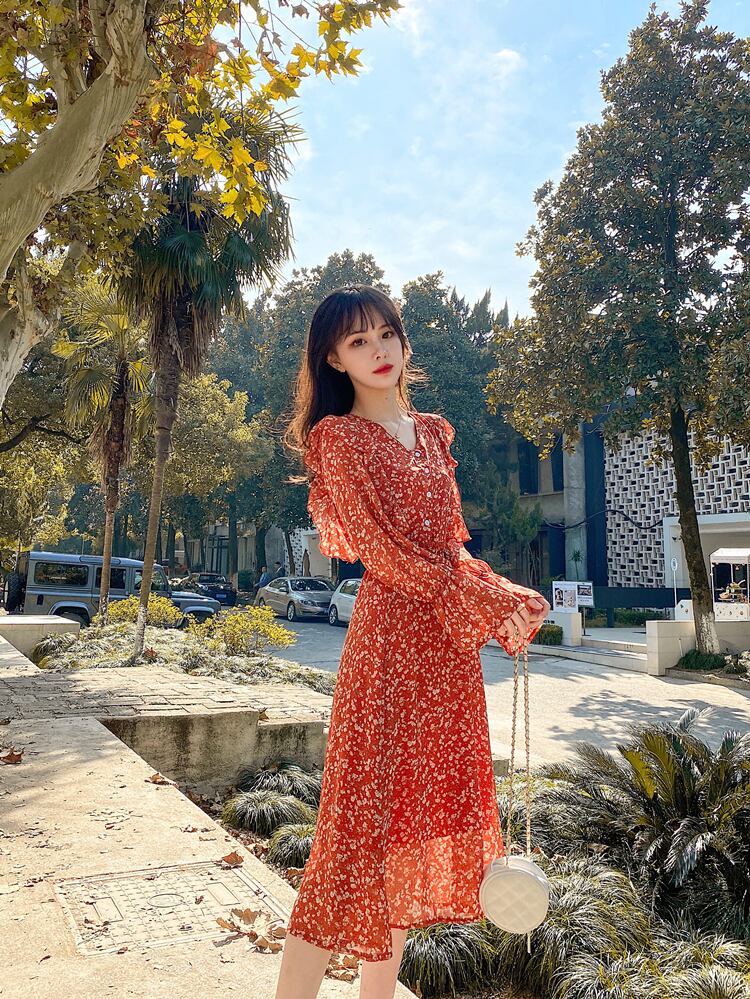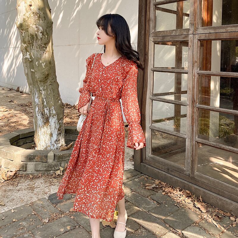2020年春新バージョンルーズで薄いシフォンフローラルドレス女性ウエストミドル丈フローラルベーススカート スプリング 春物 花柄 yingd50748935121
