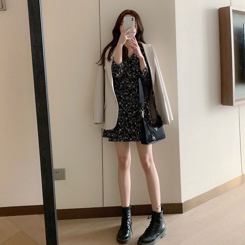 2021年初秋新しいフランスのハイエンドスーツジャケット気質ウエストウエストフローラルドレスツーピース薄片 オータム 秋物 花柄 yingd62401484212