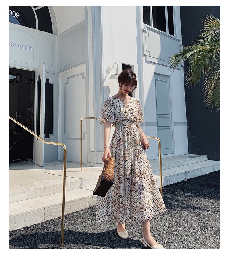 2020年夏の新作フレンチレトロ気質ウエストは細くて背が高く、ロングスカートのフェアリープリントシフォンドレス女性 サマー 夏物 yingd39039884733