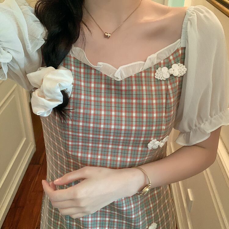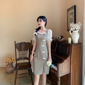 チャイナドレス改良版ドレスレディース2020夏新作気質ウエストスリミングパフスリーブフレンチレトロスカート サマー 夏物 yingd81771447924